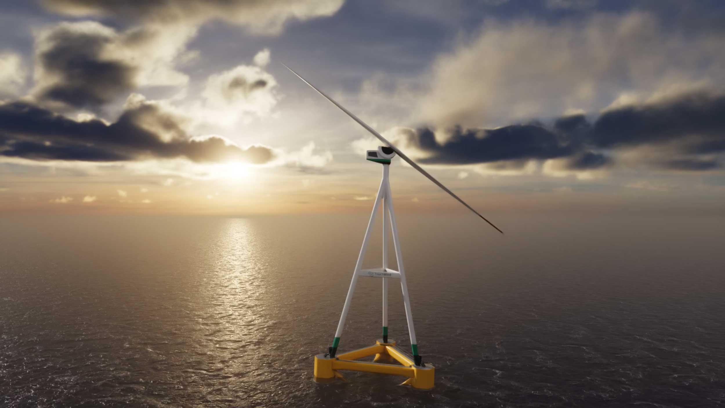 TouchWind has developed an innovative floating wind turbine designed specifically for offshore applications. Its core innovation is a downwind, tilting rotor with a single-piece blade, providing several advantages over conventional three-bladed upwind turbines: